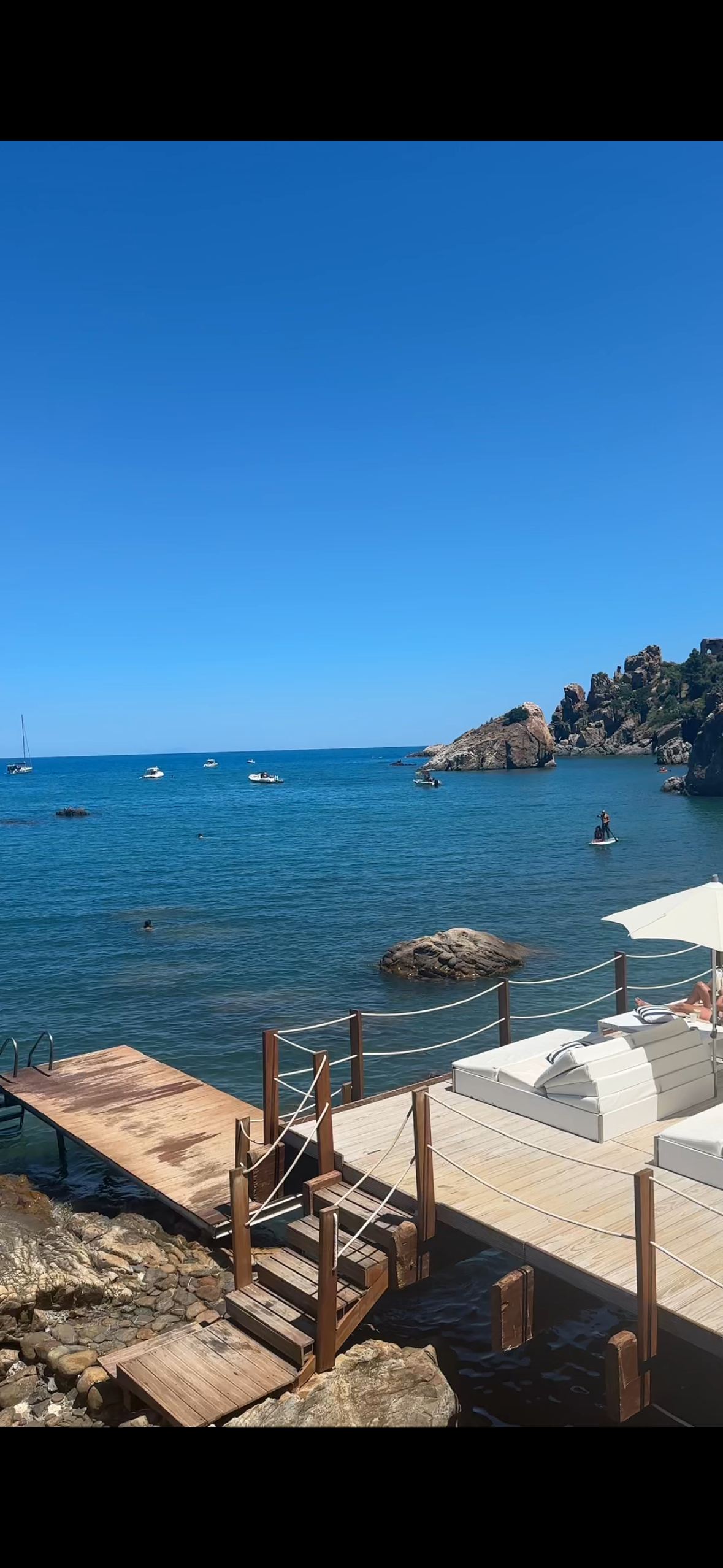 The beaches here are stunning, with numerous options for renting a sunbed for the day. However, keep in mind that prices tend to rise on weekends! When we went, we arrived early to soak up as much sun as possible. Rates were around €20 per bed on weekdays, but can jump to €30-€40 on weekends. While there are sections of the beach open to the public, they can get quite crowded. Plus, you'll find lifeguards on duty for added safety.