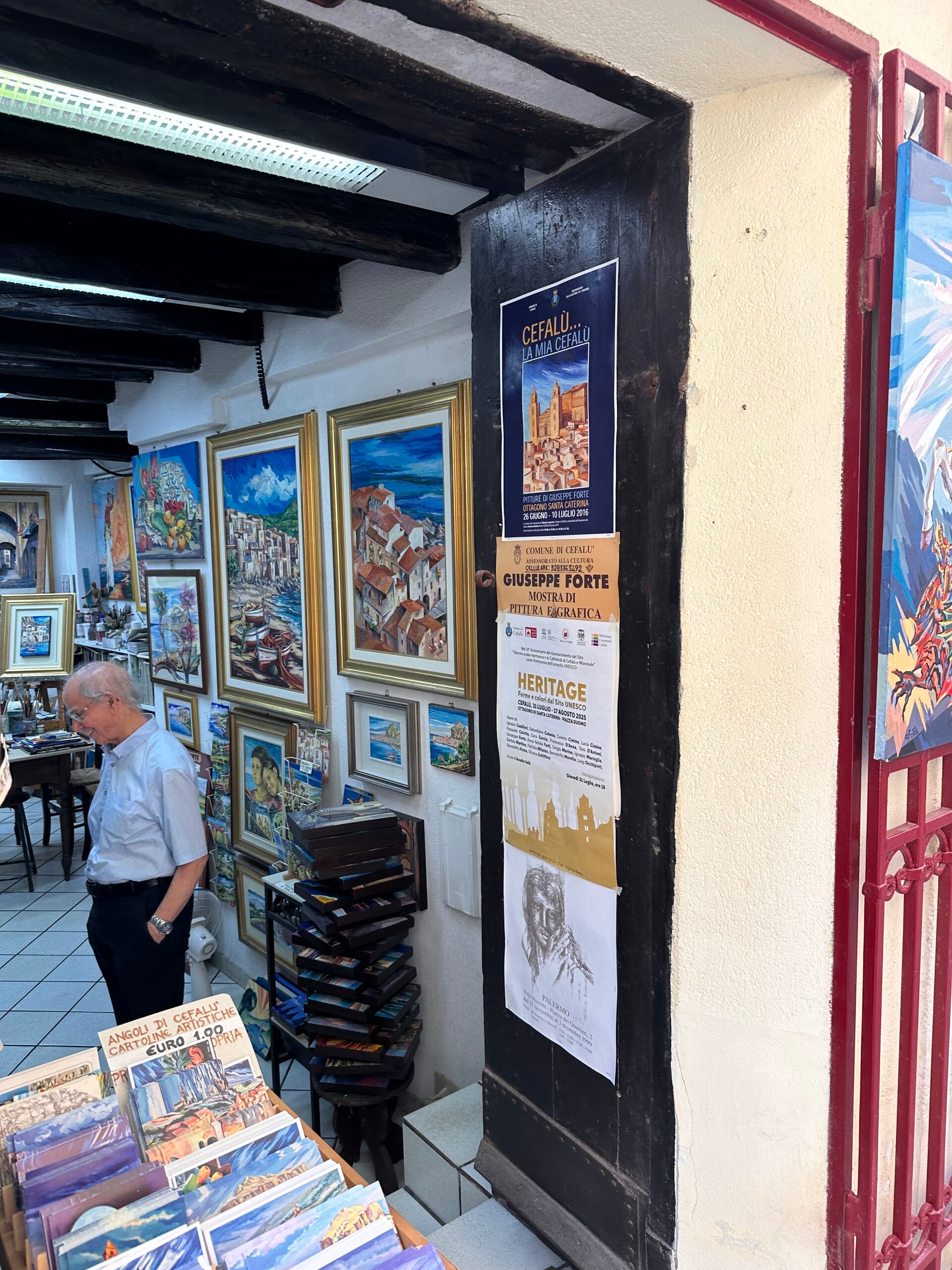 We purchased a piece of artwork from Giuseppe Forte, a talented artist who has a charming shop along a cobbled street. I could have spent hours browsing his work. You can see Giuseppe in the picture to the right, a lovely man that takes much pride in his work. He was so kind to offer his time to show me his artwork - not only does he bring Sicilian landscapes to life, but his artwork also digs deeper into the pain of the human experience.